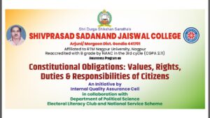 The Awareness Program on “Constitutional Obligations: Values, Rights, Duties & Responsibilities of Citizens” held at the Seminar Hall of the college on the occasion of