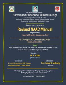 SHIVPRASAD SADANAND JAISWAL COLLEGE (ARTS, COMMERCE AND SCIENCE) ARJUNI/MOR. DIST-GONDIA, (M.S.) Re-Accredited With ‘B’ Grade By NAAC (3rd Cycle) “Entrepreneurship Development and opportunities in