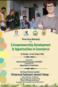 Three Days Workshop on Entrepreneurship Development & Oppotunities in Commerce