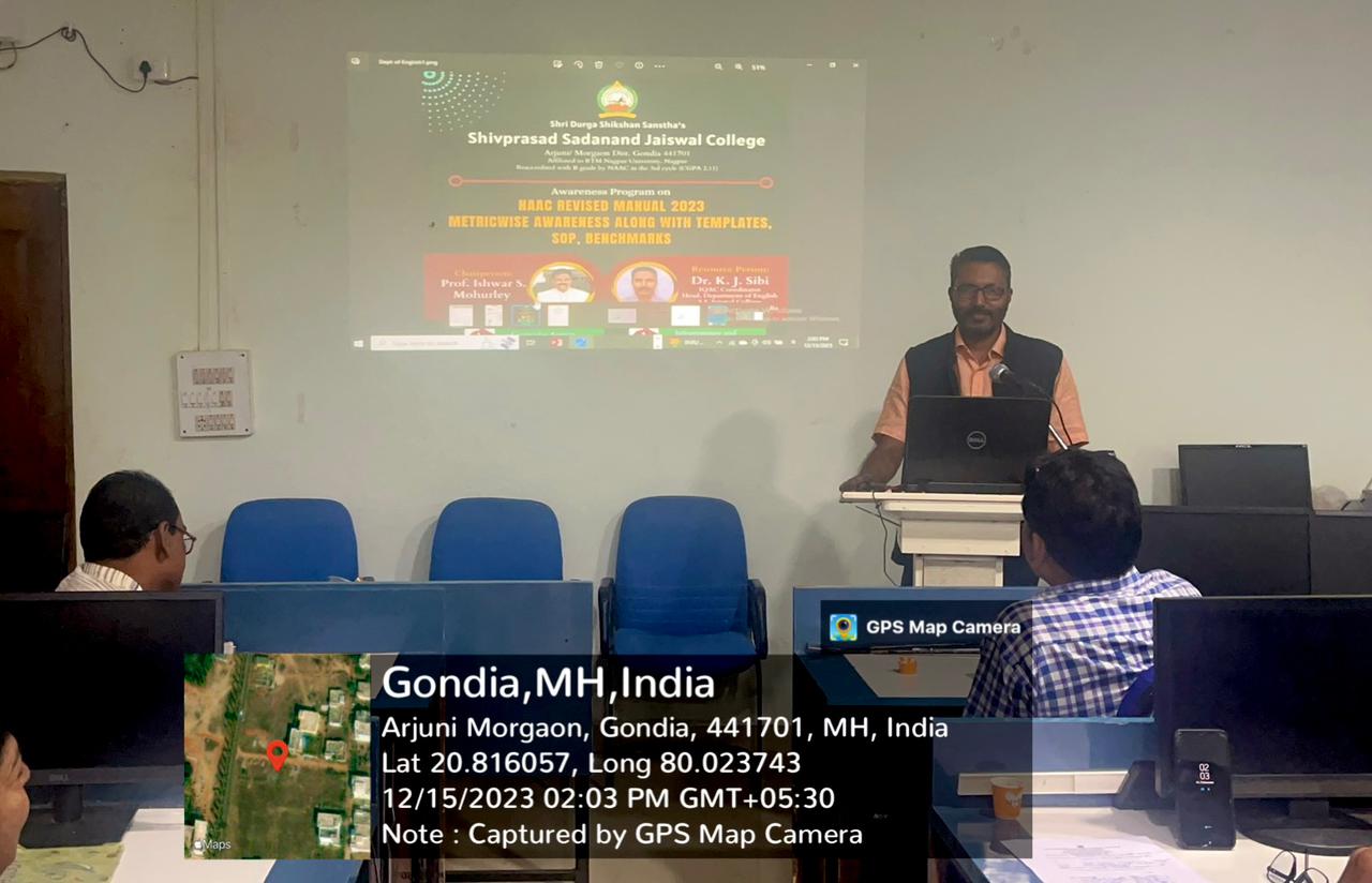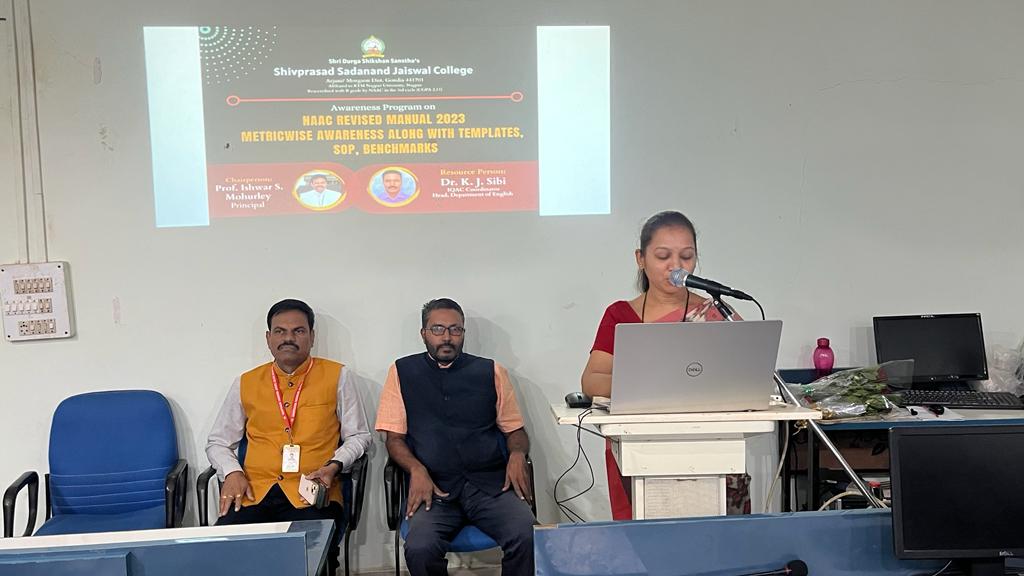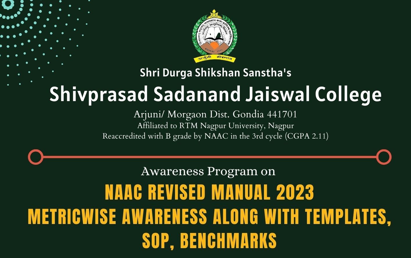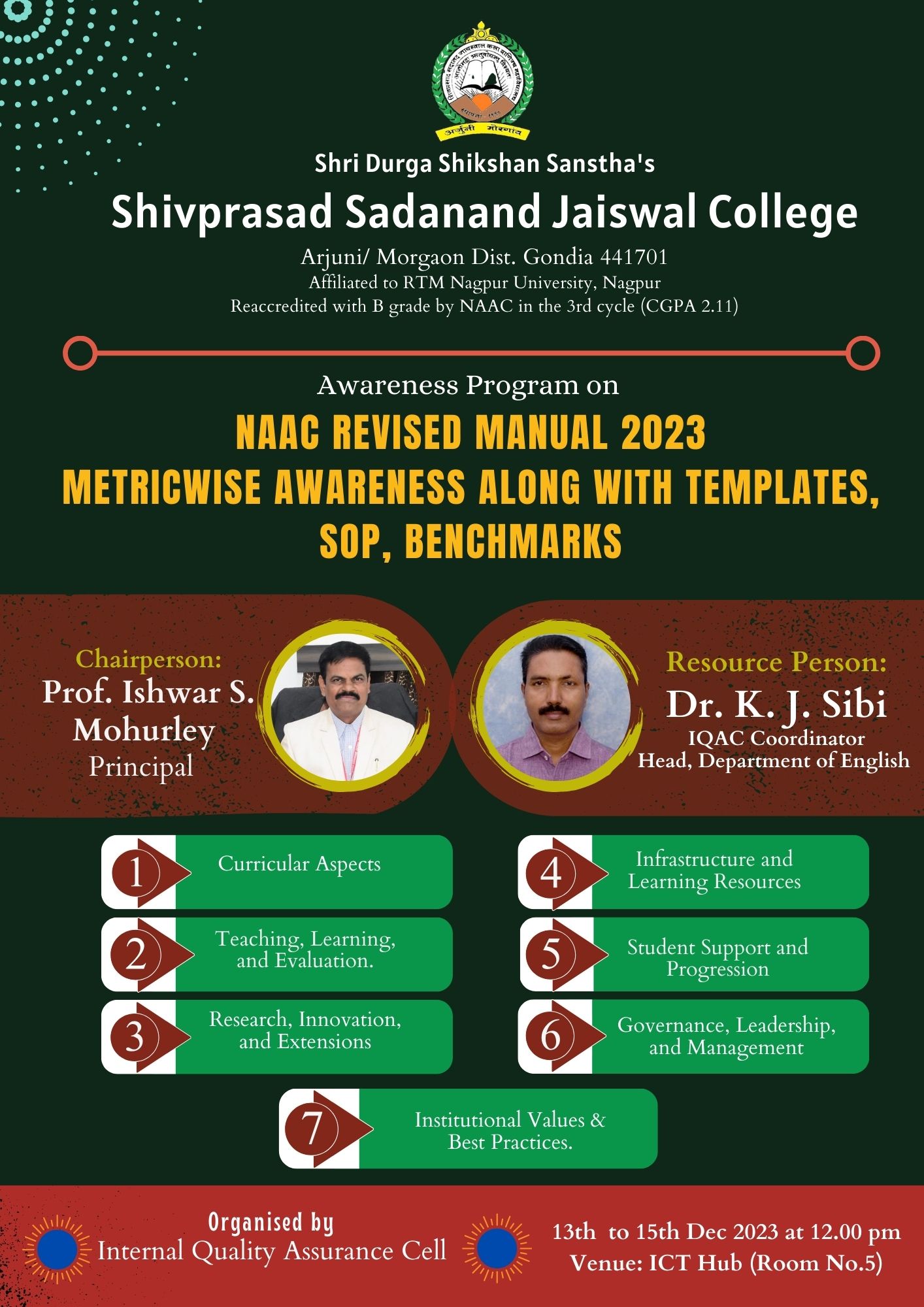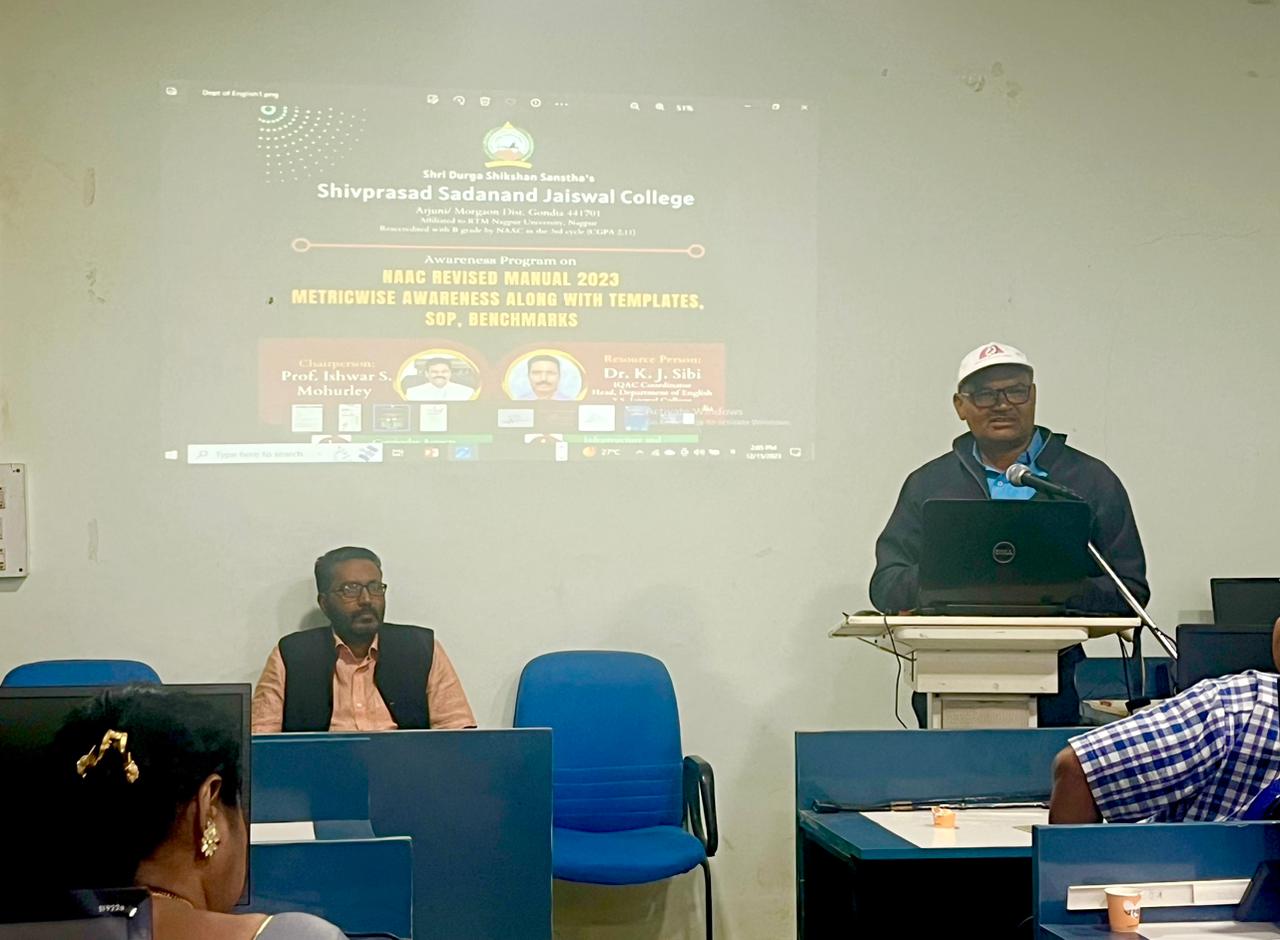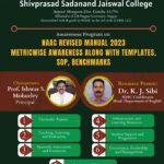 Dr. Ishwar Mohurley, who presided over the event, provided valuable guidance and support, emphasizing the importance of adherence to NAAC standards. Mr. Laxmikant Kapgate, Assistant IQAC Coordinator, delivered the introductory note, setting the stage for the program and emphasizing the significance of compliance with NAAC standards. Miss Swati Madavi, in her role as the program comparer, facilitated a comparative analysis of the NAAC Revised Manual, providing context and clarity to the participants.