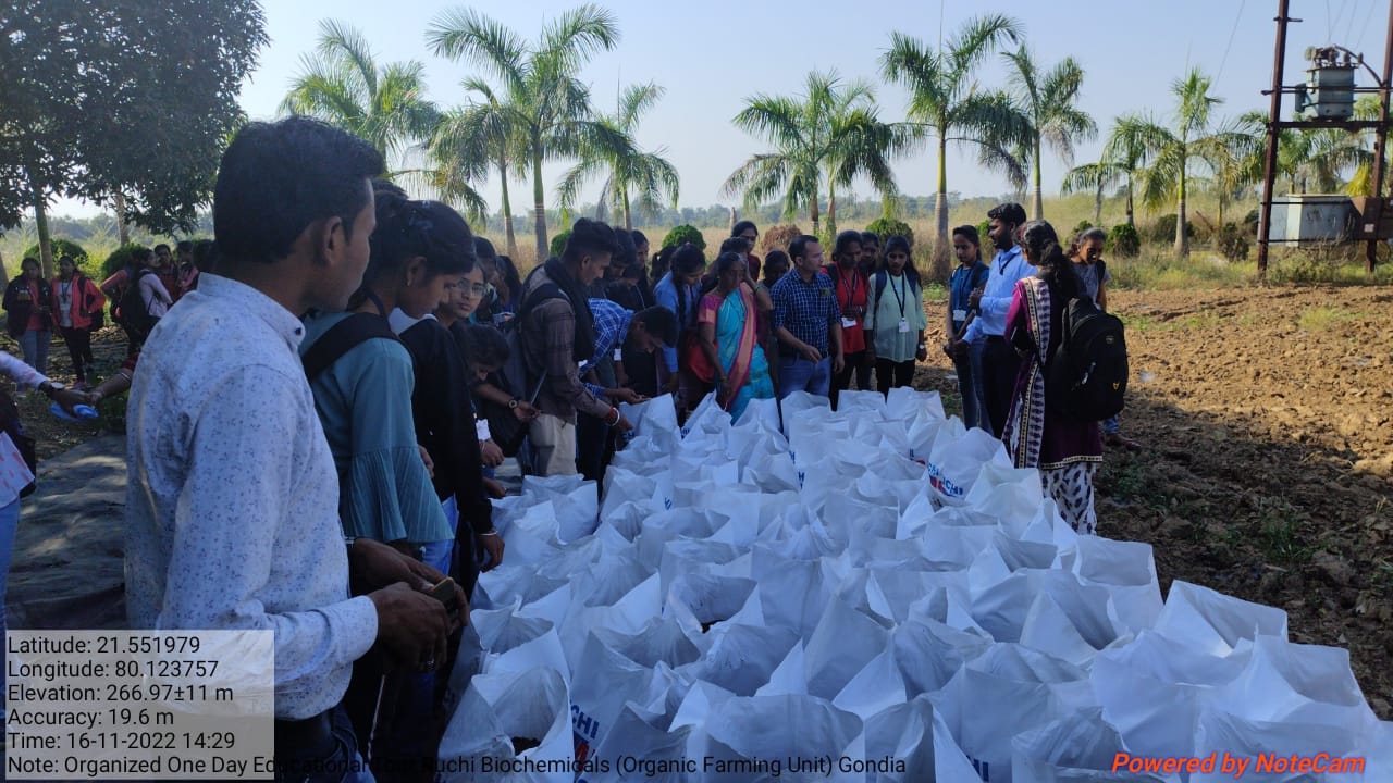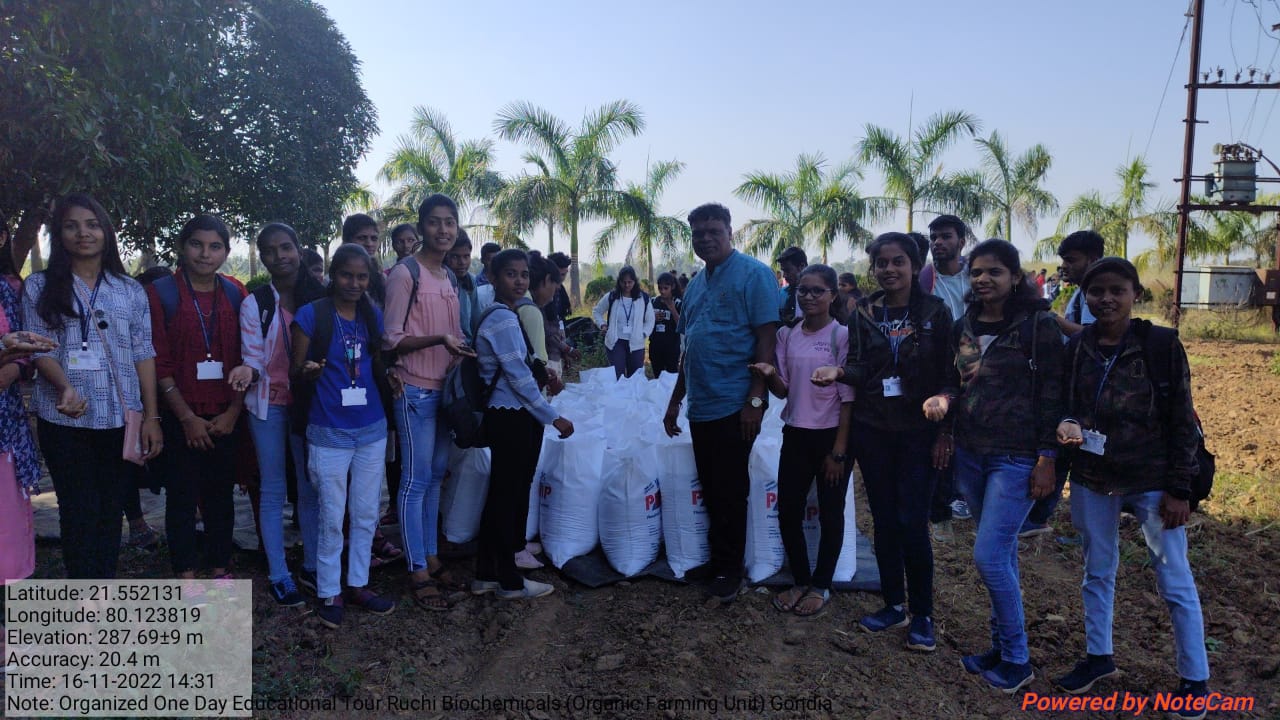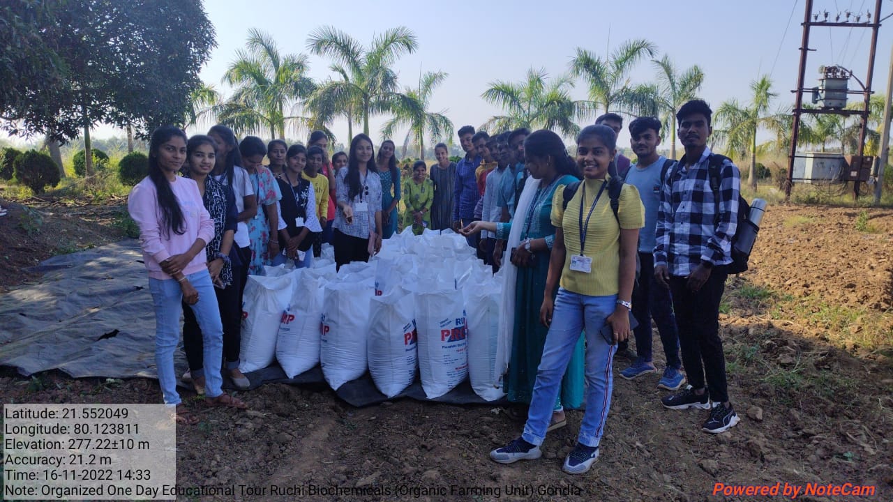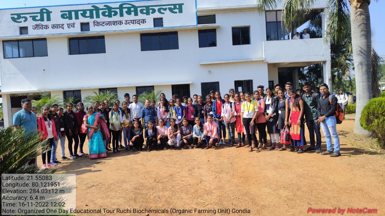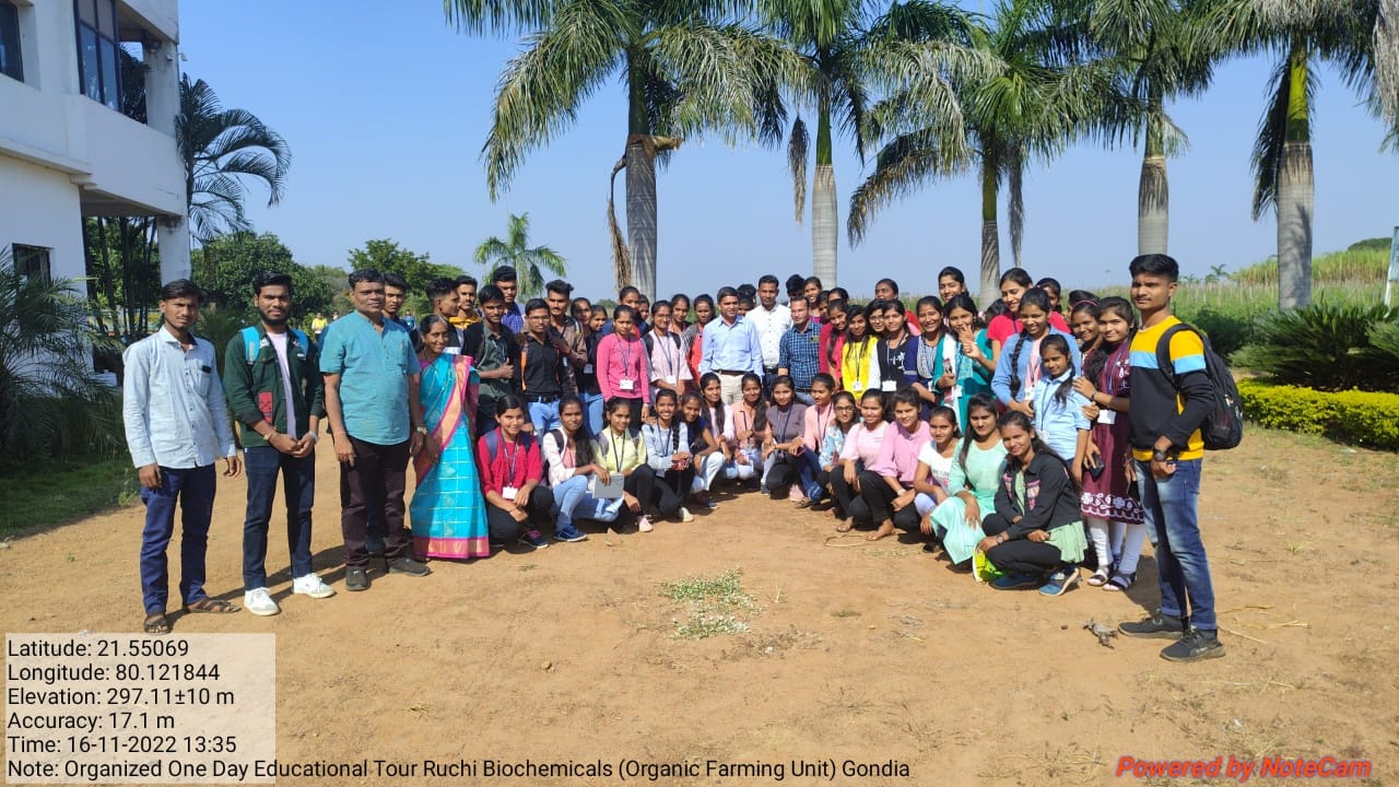 The department of Botany S. S. Jaiswal College organized one day tour on 16th November, 2022 at Ruchi Biochemical and Agrofarming Kudwa, Gondia. Total 98 students of the B.Sc. 1st, 3rd and 5th Semester were participated. Along with Students, three Teachers namely Dr. L. N. Borkar, Mr. K. S. Lokhande, Mr. D. V. Bawankule and one attendant Smt. Sunita Tawade.