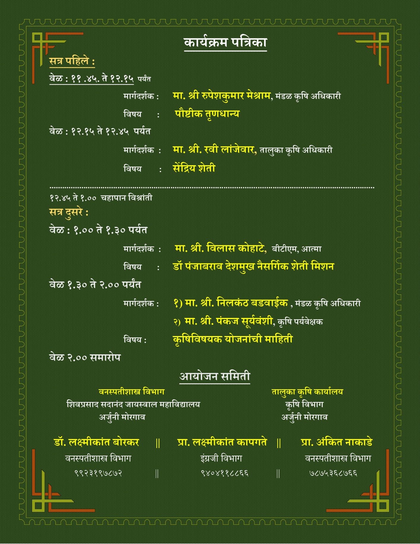 The success of the event can be attributed to the thoughtful contributions of the speakers, the active participation of attendees, and the collaborative efforts of all involved stakeholders. This initiative reflects the commitment of Shivprasad Sadanand Jaiswal College to contribute meaningfully to the agricultural development of the region.