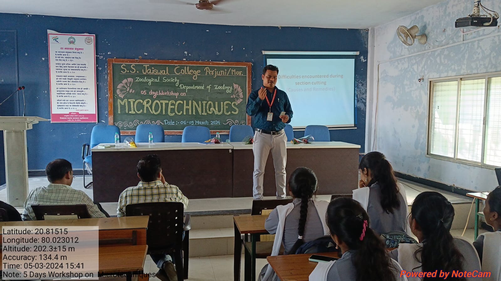 Inauguration is followed by the guest lecture by Virendra K. Sangode on topic Introduction to Microtechnique. The second session of the day 1 was on the lecture by the resource person Dr. Manoj K. Bangadkar on topic Basics of Microtechnique.