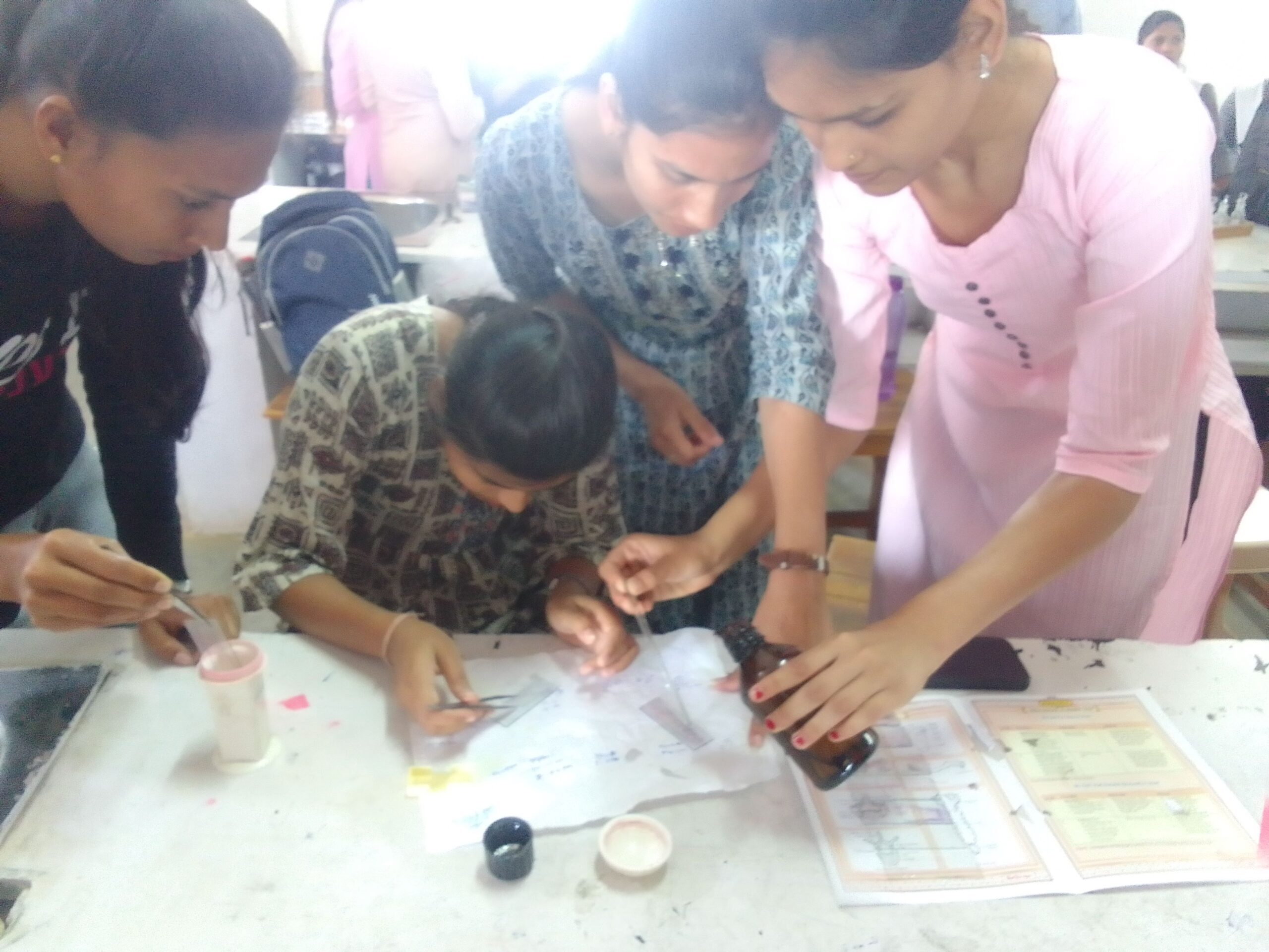 Day 05: Demonstration and Hands on training of the Histological staining of the spreaded slides including deparaffinization, double staining, clearing and mounting in DPX. After mounting of sections the results observed by students under microscope and photographs were taken under the guidance of Resource person Dr. Manoj K. Bangadkar.