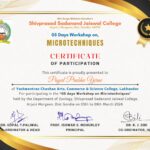 Workshop was ended with the Valedictory programme organized in Zoology laboratory. The chairperson of the valedictory programme was Prof. Ishwar S. Mohurley sir, Principal and Chief Guest Prof. Padurand S. Dange sir, Head department of Commerce and Member of Management council, RTM Nagpur University, Nagpur. Programme was conducted in the presence of Dr. Gopal T. Paliwal, Dr. Manoj K. Bangadkar and Ms. Mansee Khare. Students shares their feedback and experiences about the workshop. Certificates were presented to all the participants after getting feedback responses.