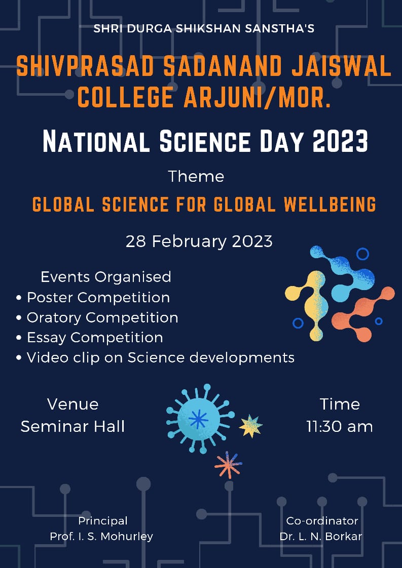 Chief guest Dr. S. R. Deshmukh has given a brief talk on Azolla and it’s importance in agriculture.. Dr. D.L. Chaudhari has put light on the work of Sir C.V Raman, IQAC Co-ordinator Dr. K.J. Sibi has address the event by explaining the importance of National Science Day. Chairperson Prof I.S. Mohurley has guided the students on the importance of the theme of Science day and the concept of togetherness and team work.