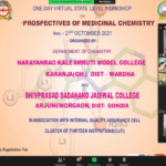 The valedictory function was presided over by Dr. Sanjay P. Dhanwate, Principal, Narayanrao Kale Smruti Model College, Karanja (Gh.) and the chief guests were Dr. Chandrakant    Bhaskar Prof. & Head of Department Chemistry, Taywade College, Koradi. Dr. Chandrakant Bhaskar expressed his views about the ‘Prospective of Medicinal Chemistry’’. He explored the Importance and measures of the recent development of Medicinal Chemistry.  Dr. Sanjay P. Dhanwate summarized the one-day workshop in his presidential speech.