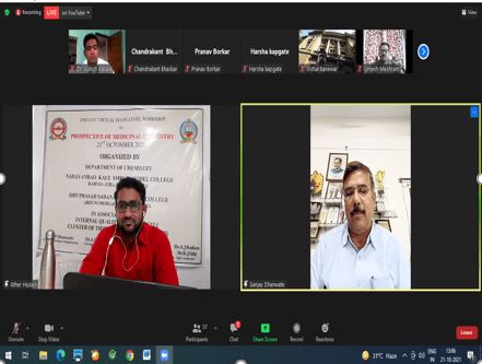 The workshop was inaugurated with Chair Person, Dr. Ashwin M. Chandel  Off. Principal S.S.J.College, Arjuni/Mor., chief guest, Dr. Sanjay P. Dhanwate,  Principal, Narayanrao Kale Smruti Model College, Karanja(Gh.), Dr. Pralhad  K. Rahangadale,  Prof. & head of chemistry department, Bhawabhuti Mahavidyalaya Amgaon Dist.- Gondia resource person Dr. Vishal N. Banewar Associate Professor, Dept. of Chemistry Institute of Science, Mumbai, Dr. Umesh  P. Meshram, organizing secretary  and Dr. Nitin  D. Vilayatkar organizing secretary.