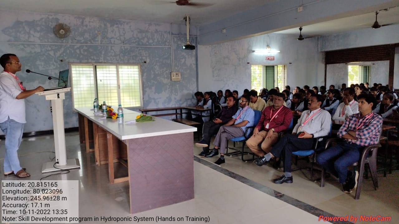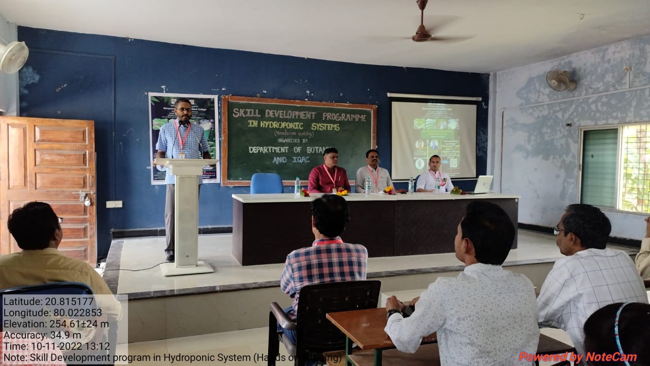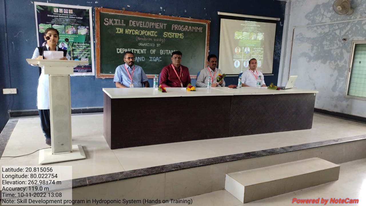 Introductory Speech was given by Dr. Laxmikant N. Borkar. He briefly explains the advantages of the hydroponic system. IQAC coordinator Dr. K.J.Sibi explains the importance of such a program to cultivate practical knowledge among the students. The presidential speech was given by Principal professor Ishwar Mohurley sir. He briefly explained the Importance of skill development program and certificate courses in Choice Based Credit System. Sir also encourages the student to participate in such various activities for their overall development.