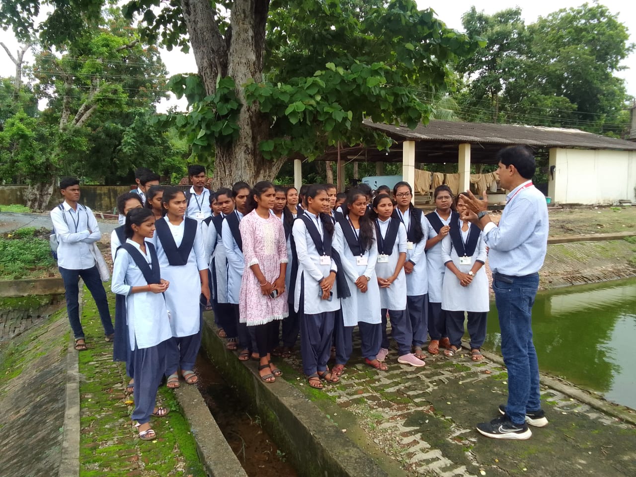 At about 08.00 am all the students and faculty members were gathered at college and started the journey to Shivanibandh by bus. The beloved principal of the college Prof. ishwar S. Mohurley was present to see off the student. He guided the student and gave best wishes for the success of the tour. At 09.00 am we reached to Government Fish Seed Production Centre Shivanibandh.