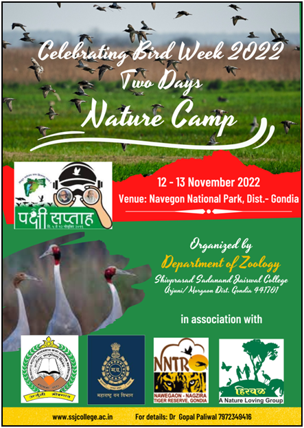 As a part of bird week 2022 celebration, Department of Zoology, S. S. Jaiswal College, Arjuni Mor. was organized a Two days Nature Camp at Navegaon national park, Dist gondia on dated 12th and 13th November 2022. The programme was in association with Maharashtra Forest department, hirwad NGO, Gondia and NNTR.