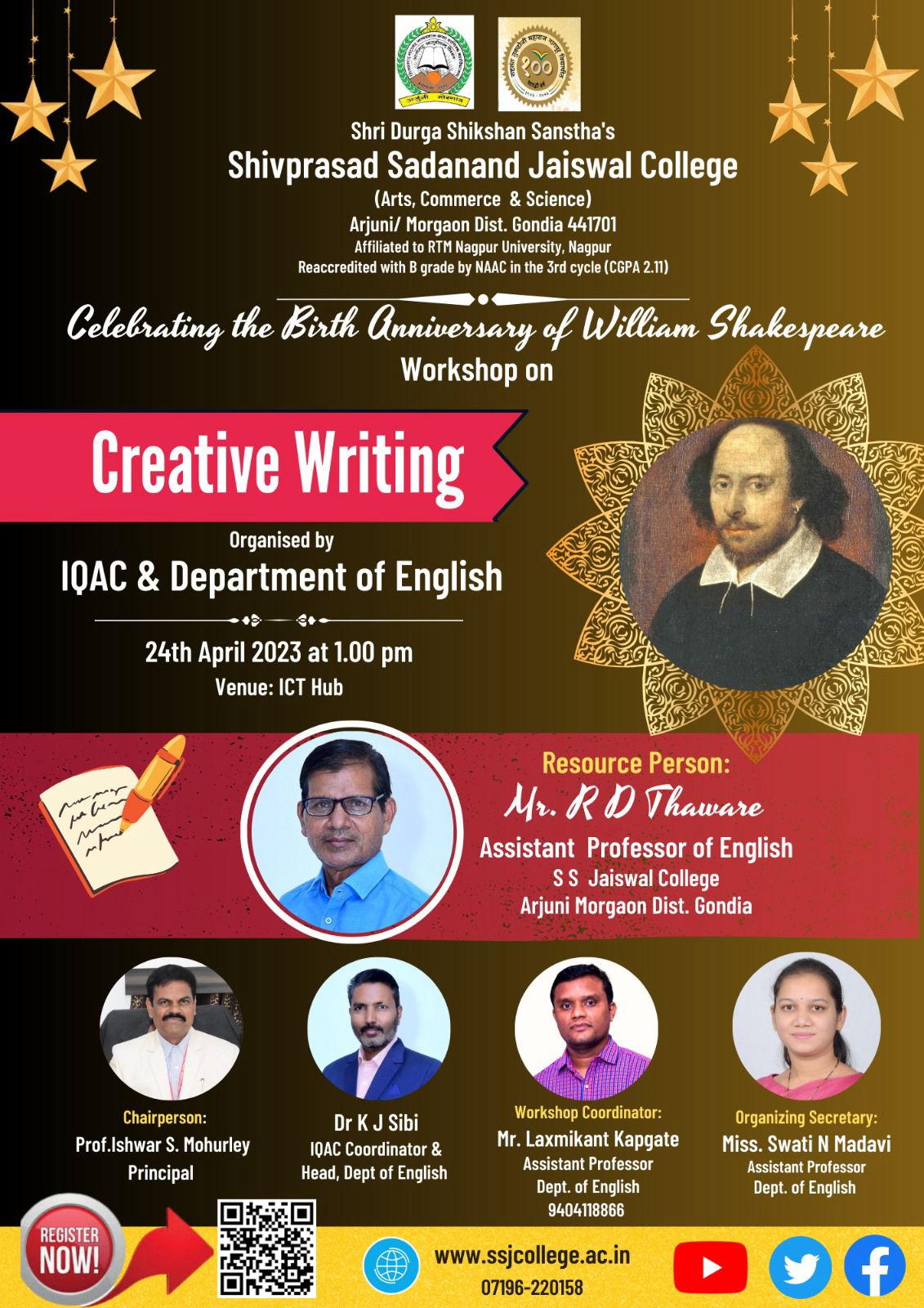 • Mr. Ravi Thaware, Assistant Professor, was the resource person for the workshop. With his extensive expertise in creative writing, Mr. Thaware guided participants through various aspects of the craft, providing insights, techniques, and practical exercises to inspire and improve their writing abilities.