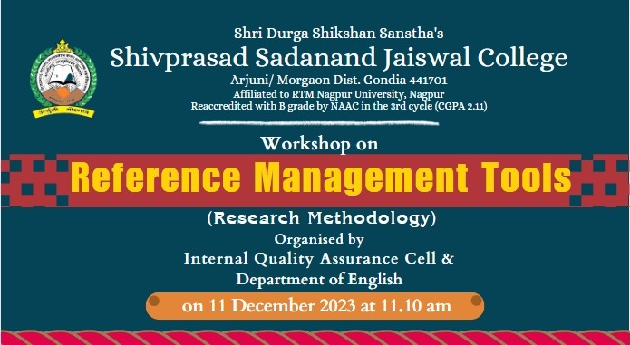 The workshop on Reference Management Tools was held on 11th December 2023, at 11:10 AM, organized jointly by the Internal Quality Assurance Cell (IQAC) and the Department of English. The workshop aims to empower participants with the knowledge and skills required to manage references effectively, thereby enhancing the quality of their research work. Mr. Laxmikant Kapgate, Department of English, SS Jaiswal College, Arjuni Morgaon, served as the resource person. His expertise in the field and practical insights into reference management tools added substantial value to the workshop. Mr. Laxmikant Kapgate covered the workshop’s central topics, including Zotero, Endnote, Mendeley, and Refman, providing a comprehensive understanding of each tool’s features and applications.