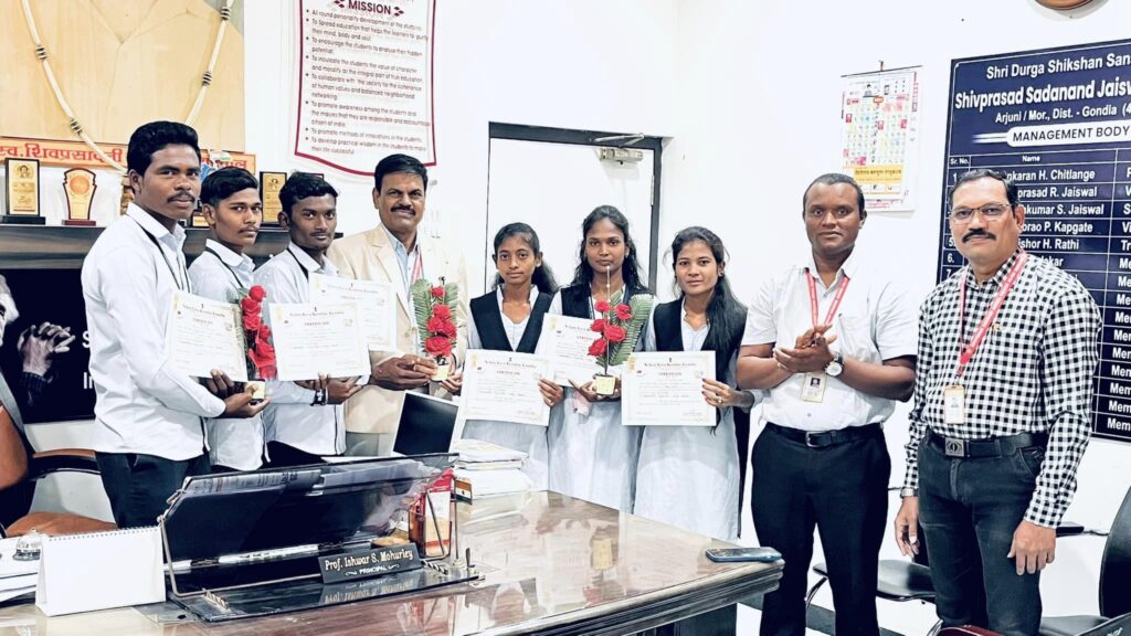 We are happy to share that the cultural team of Folk Dance (Dandar) of our college has participated and won the First Prize in the District Level Youth Festival 2023 organised by Nehru Yuva Kendra Gondia (Govt of India. Prof. Ishawar Mohurley congratulated the team and their mentor, Mr Laxmikant Kapgate, the Cultural Program in charge.  Hearty congratulations to Kameshwar Aurase, Laxmi Taram, Pranay Raut, Lalita Koram, Praful Chanap and Tejaswaini Naik for their outstanding achievement.